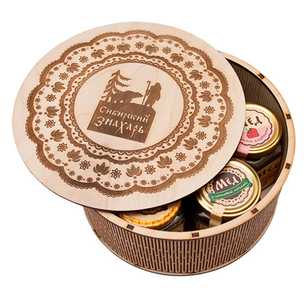 Крем-мёд с малиной, крем-мёд с кедровым орехом, конверт деревянный, кедровый грильяж с сосновой шишкой, кедровый орех в сосновом сиропе, кедровый орех в сиропе из одуванчика, кедровый орех в сиропе из калины, подарочный набор премиум, шкатулка, лукошко на 2 баночки.